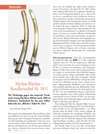 Die Niederlage gegen das imperiale Frankreich zwang Preußens Militär nach 1806 zu Reformen. Symbolisch für das neue Selbstbild steht der „Blücher„-Säbel M. 1811. Von Christian Wagner M.A. Die gesamte Entwicklungslinie der preußischen Säbel nach „Blücher-Art„ lässt sich auf die forcierte Waffenlieferung aus dem Vereinigten Königreich zurückführen. Die Niederlage der preußischen Armee bei Auerstedt und Jena im Jahr 1806 brachte hohe Verluste an Mensch und Material mit sich. Da die eigene Industrie das verlorene Material nicht ersetzen konnte, importierte man aus England das „light cavalry trooper´s sword 1796 pattern„, den Säbel M 1796. 1807 wurden über Kolberg 6000 Stück des englischen Modells geliefert. Die Festungsstadt Kolberg war zu dieser Zeit der letzte in preußischer Hand verbliebene Hochseehafen und bereits von den vorstoßenden französischen Truppen belagert. Das Freicorps des Oberst von Schill operierte damals im Raum Kolberg und erhielt als erste Einheit die neuen englischen Säbel. Es folgte die Ausrüstung des Pommerschen Husarenregiments Nr. 5, das unter Generalleutnant von Blücher in Stralsund lagerte. |